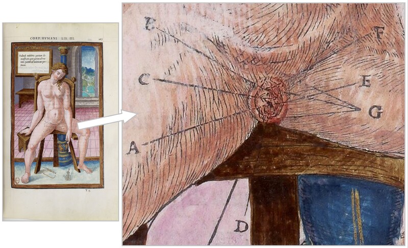 - Planche consacrée au pudendum féminin dans un exemplaire peint à la main.