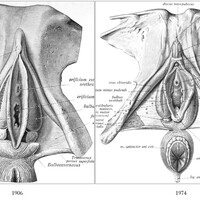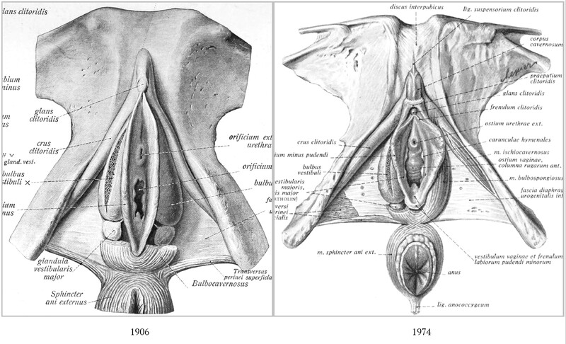 A gauche : Sobotta, Atlas der deskriptiven Anatomie des Menschen, 4e ed, Munich, J. F. Lehmanns, 1922, p.415 (détail) [1906]. A droite : Sobotta/Becher - Atlas of human anatomy, Baltimore / Munich, Urban & Schwarzenberg, 1975, p.223 (detail) [1974]