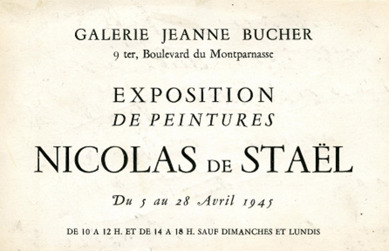 Conquise par l’œuvre de Staël, Jeanne Bucher confie à son amie Vieira da Silva en 1945 : « J’expose un jeune, Nicolas de Staël, dont les tendances sont abstraites, pas très éloignées des vôtres, en somme… Sa palette, c’est du velours. »(2)