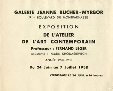 Notons enfin qu’elle n’oublie jamais de signaler le rôle des femmes pour la réalisation d’une exposition ou pour la formation d’élèves comme en témoigne le carton d’invitation de 1938 de l’atelier de l’art contemporain de Fernand Léger où figure le nom de Nadia Khodasievitch, assistante et future épouse de Léger.