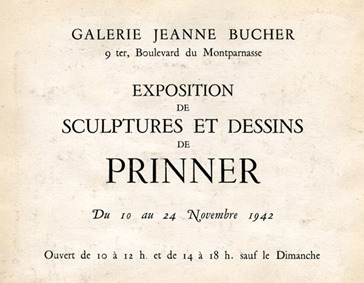 Ainsi avant l’exposition de novembre 1942 « Sculptures et dessins d’Anton Prinner », Jeanne écrit à Eve en février qu’elle admire les hautes figures féminines totemiques en bois sculptées par l’artiste : « C'est génial mais inégal, prometteur surtout : je vais faire pour elle une exposition (j'ai aussi acheté un grand fusain qui représente des tournesols). J'étais très émue comme on peut l'être de la naissance d'un enfant. »(2)